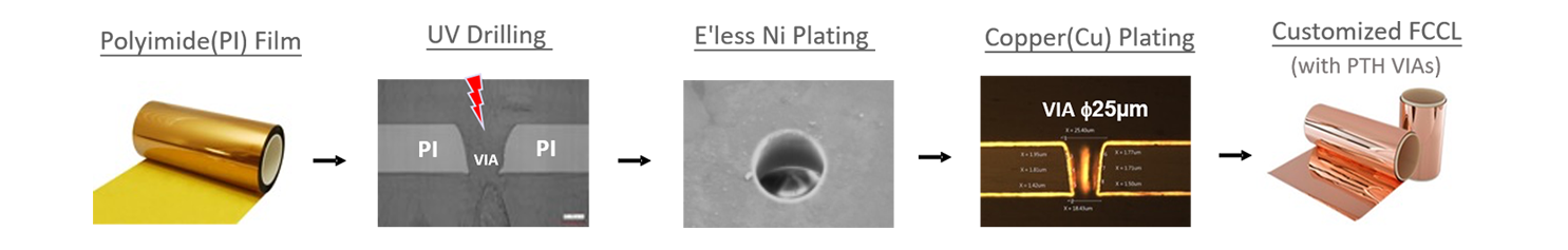 In addition, PMR adopts a new proprietary process to carry out laser drilling and then PI metalization, so called pre-drilling technology, replacing the traditional drilling and metalization of conductive holes on copper foil substrates (FCCL), and greatly simplifying FPC manufacturing. This unique process can significantly improve FPC production efficiencies and reduce production costs.
